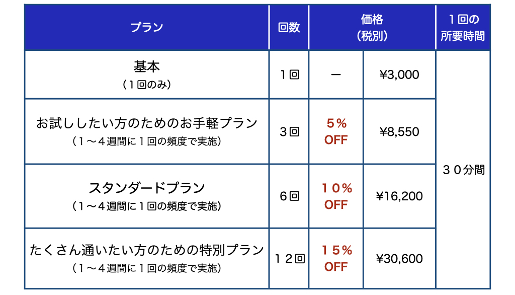 アレルギー等の心配がないようでしたら、お手軽プラン(5%OFF)をオススメします。その後、さらに継続をご希望の方はスタンダードプラン(10%OFF)がお得です。
