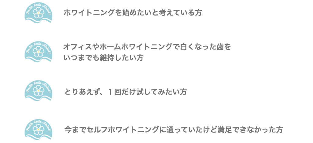 今までセルフホワイトニングに通っていたけど満足できなかった方や、ホワイトニングが初めての方にオススメです♪